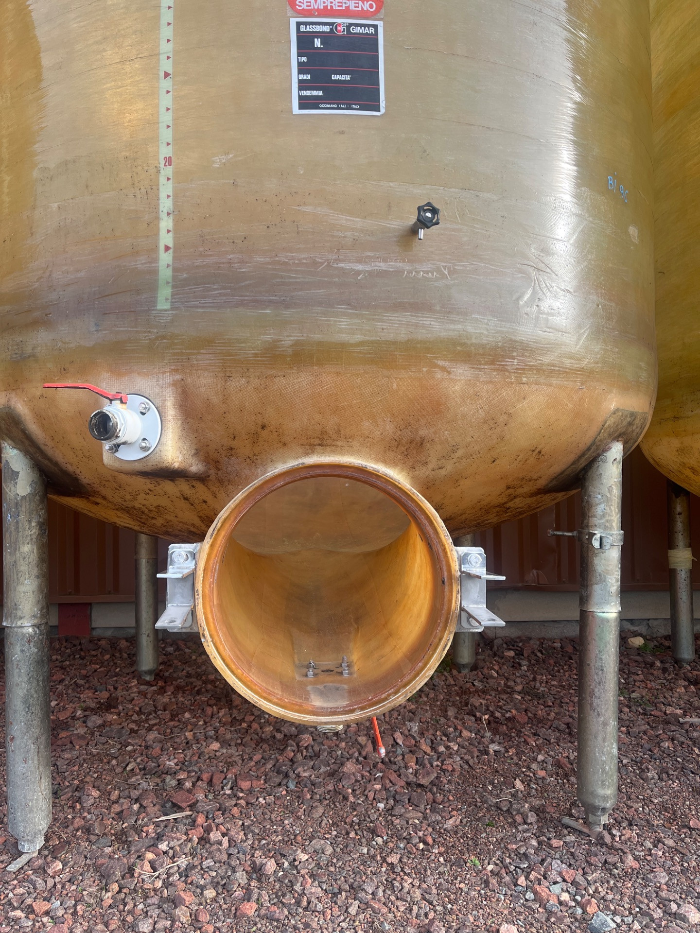 <strong>Marque</strong> : GIMAR<br /><strong>Volume</strong> : 60hL <h3><strong>Dimensions</strong></h3> <strong>Diamètre intérieur :</strong> 2000mm <br /><strong>Diamètre extérieur :</strong> 2100mm <br /><strong>Hauteur :</strong> 2800mm + 300mm de potence <h3><strong>Description</strong></h3> <strong>Type de cuve :</strong> cuve de vinification <br /><strong>Type de fond :</strong> fond conique sur pieds <br /><strong>Type de plafond :</strong> plafond mobile <br /><strong>Nb de vanne :</strong> 2 vannes et 1 dégustateur <h3><strong>Etat et disponibilité</strong></h3> <strong>État :</strong> cuve occasion remise en état <br /><strong>Disponibilité :</strong> En Stock